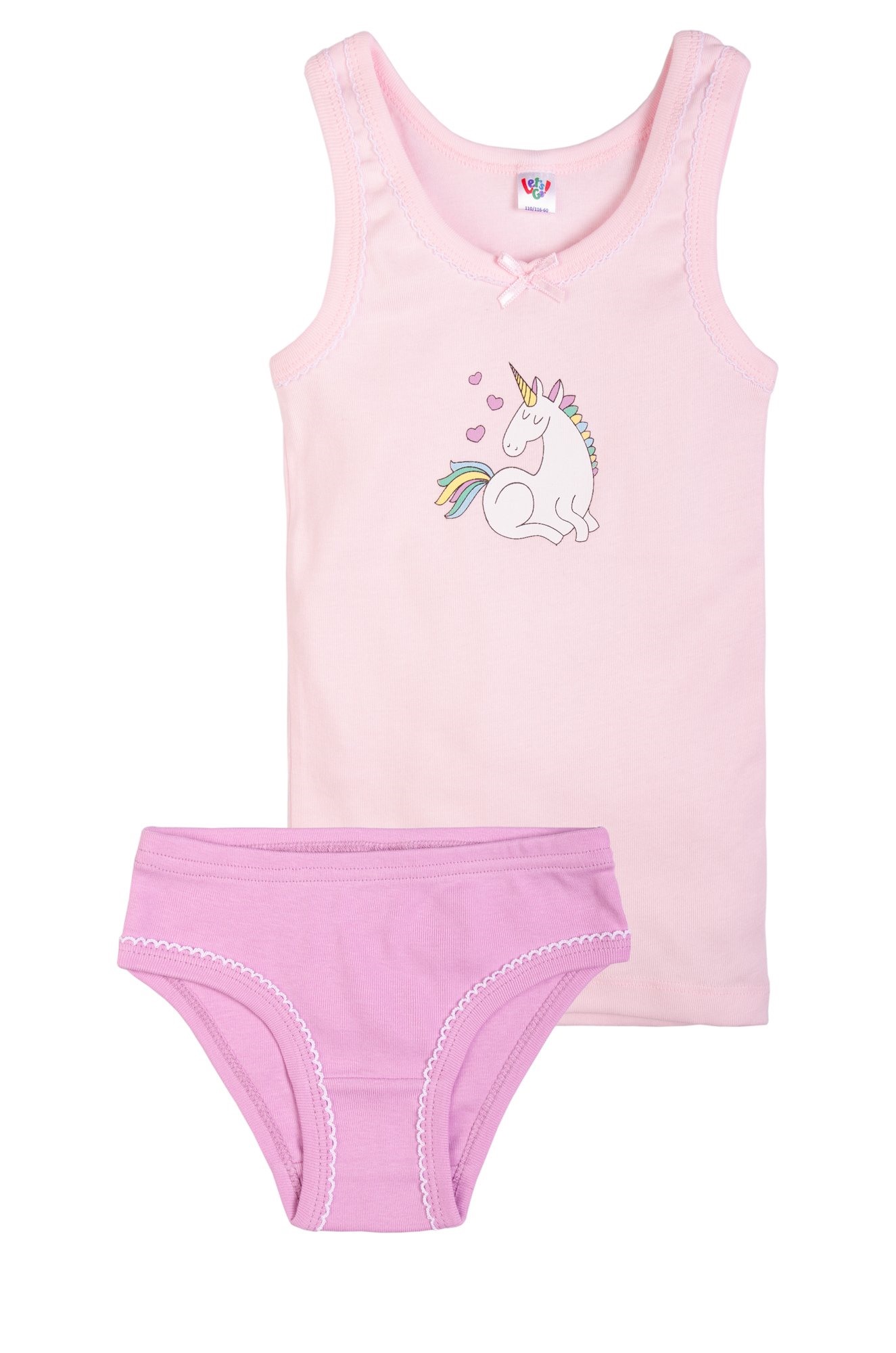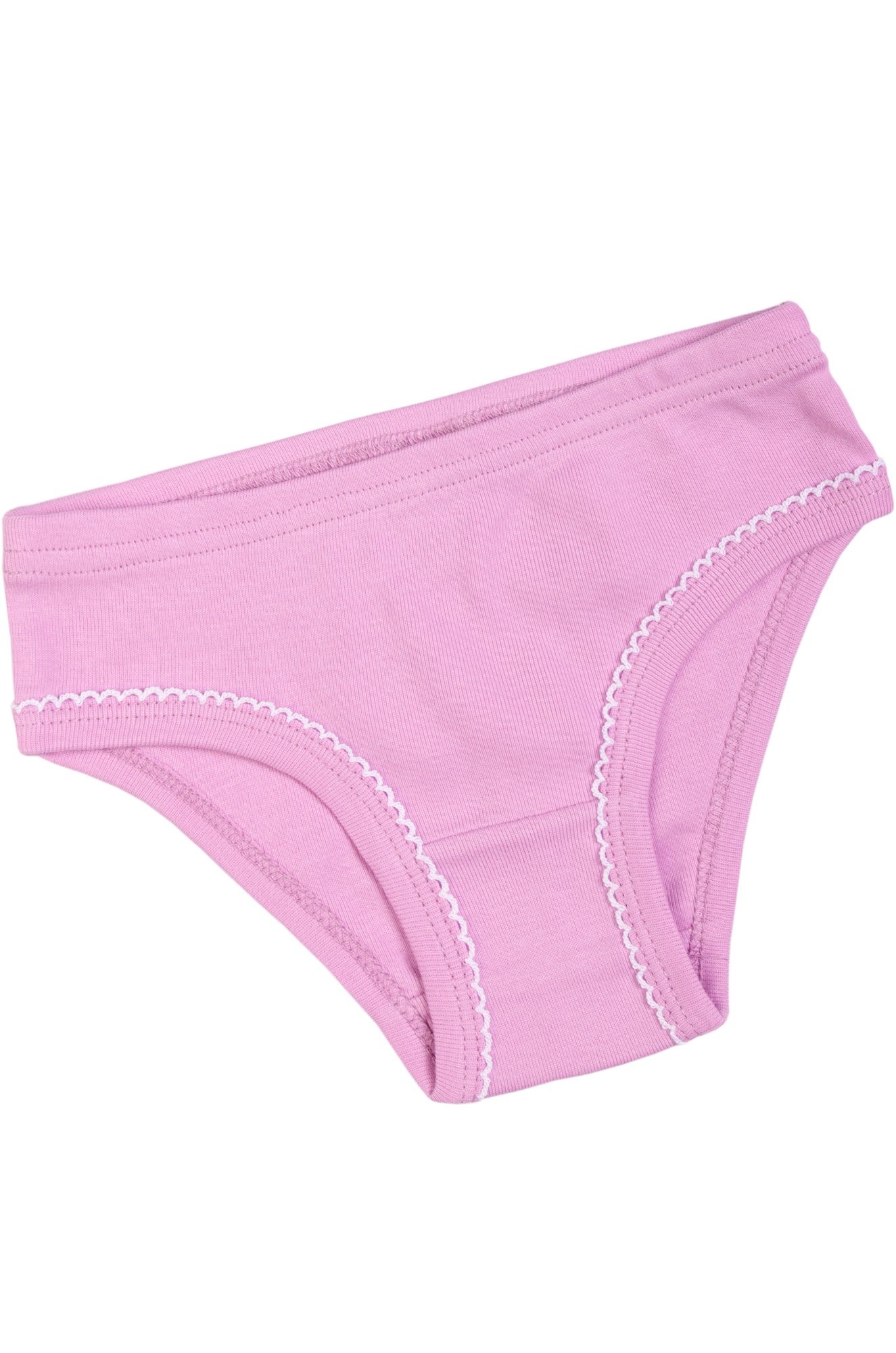 Комплект для девочки: трусики и маечка. Ткань рибана. Горловина и пройма украшены ажурной обвязкой.